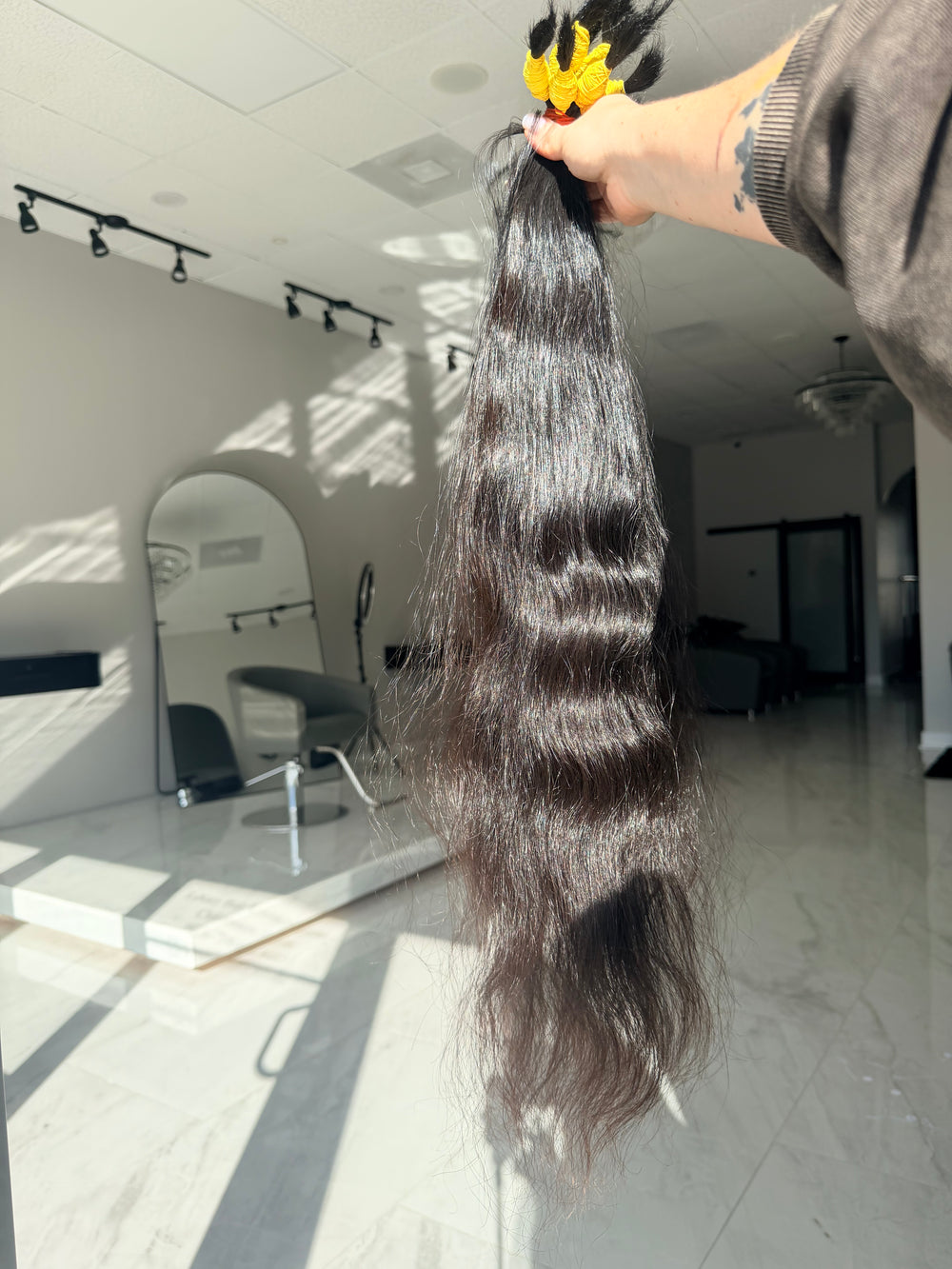 The hair shows balanced density along the full length and a smooth surface structure. It blends cleanly with natural dark brown hair, remains manageable after washing, and preserves the wave pattern during long-term wear and heat styling. Designed for professional salon use where accuracy in color and controlled texture are required.